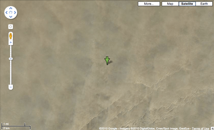 Point #10 is also on land, but now we hit another problem. This confluence point has never been visited by any of the Confluence project-nerds. A satellite image explains why. It is in the middle of the Sahara, belonging to Niger, not far from the border with Libya: