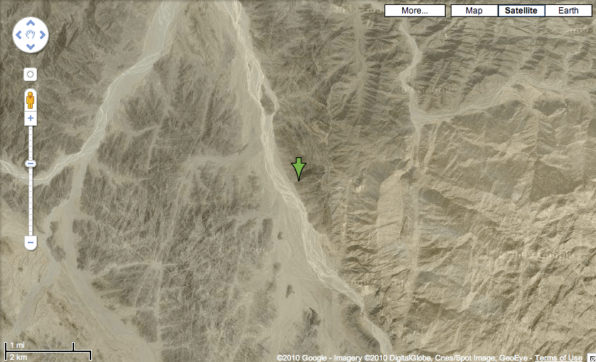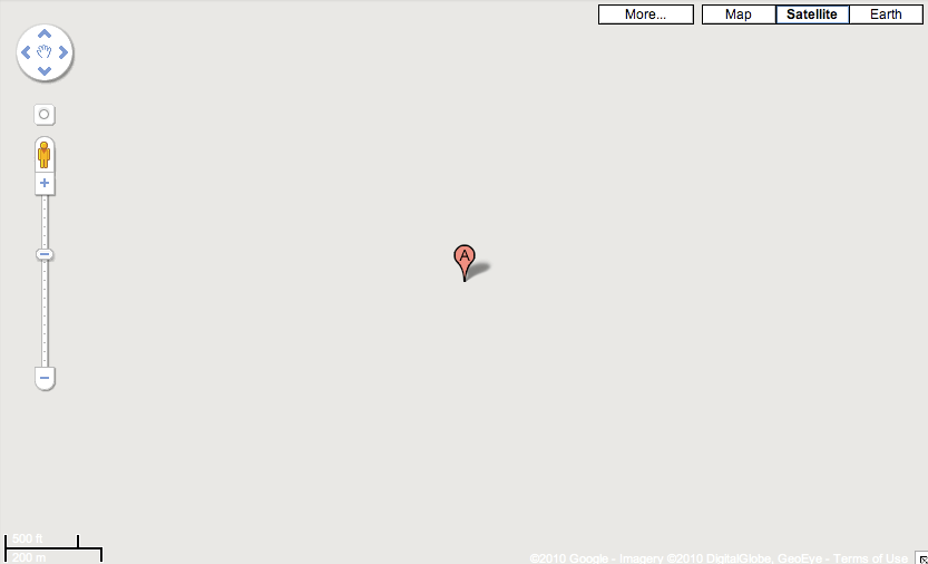 No luck here! This one is in Antarctica, not visited by a Confluence visitor. In fact it is so remote that Google doesn’t even have a satellite image of this place: