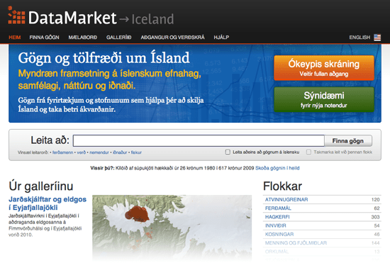 Jæja, þá er komið að því. Fyrsti áfangi nýja fyrirtækisins – DataMarket – lítur dagsins ljós í dag. Eins og líklega hefur mátt lesa á milli línanna (og af nafninu) snýst DataMarket um að koma upp markaði fyrir kaup og sölu á gögnum. Þarna er einkum átt við tölfræði og töflugögn hverskonar, eða þa...